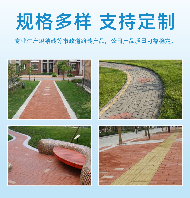?  廣場磚屬于耐磨磚的一種,具有整體性強、抗壓、抗折、強度高、不變色、不粉化、耐磨、經久耐用等特點。可廣泛應用于一般人行道、公眾街道、大樓中庭、露天娛樂場、行車路、汽車專用道路、停車場、一般餐廳、酒店大堂、廣場、商業(yè)大廈、噴水池、游泳池旁邊休閑區(qū)、庭院地板、公園人行走道、城市居住小區(qū)人行走道、綠化區(qū)散步走道等。